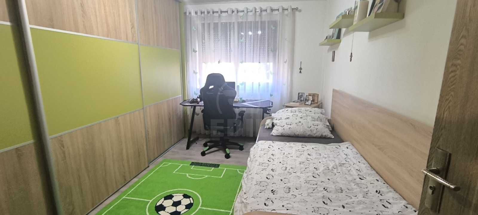Apartament cu 2 camere de vânzare în Cluj-Napoca – Mănăștur, zona Universitatea Bogdan Vodă Vă propunem spre vânzare un apartament cu 2 camere, situat la parterul unui imobil cu 4 etaje, în cartierul Mănăștur din Cluj-Napoca, în imediata apropiere a Universității Bogdan Vodă. Locuința are o suprafață utilă de 60 mp și este compartimentată confort 1, decomandat, oferind un spațiu bine organizat și funcțional. Apartamentul dispune de centrală termică proprie, baie, iar finisajele includ faianță și gresie moderne, precum și parchet laminat. Se vinde semimobilat, fiind potrivit atât pentru locuință personală, cât și pentru investiție. Printre dotările suplimentare se regăsesc boxă pentru depozitare, debara și interfon. Orientarea estică asigură lumină naturală plăcută pe parcursul dimineții. Zona este una foarte accesibilă, cu numeroase facilități în apropiere: universități, mijloace de transport în comun, magazine, farmacii și spații verzi. Pentru mai multe informații sau pentru programarea unei vizionări, nu ezitați să ne contactați.. Daca va place aceasta oferta sau pentru alte oferte nu ezitati sa ne contactati telefonic sau la sediul nostru EDIL, Str. Iuliu Maniu, Nr. 13, Ap. 6, Cluj-Napoca. APCJ357272
