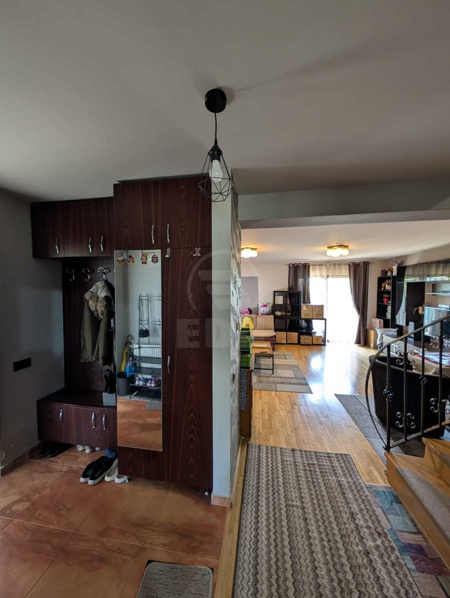 Vă prezentăm spre vânzare o casă tip duplex situată în Florești, zona AQUA PARK într-o zonă exclusivă de case, pe o alee privată, liniștită și fără trafic, ideală pentru cei care își doresc confort, intimitate. Proprietatea beneficiază de o poziționare excelentă, fiind ultima casă de pe stradă, oferind astfel un plus de liniște și intimitate, dar și acces facil atât către drumul național, cât și către varianta Grigorescu. Locuința dispune de o suprafață utilă generoasă de 180 mp și este amplasată pe un teren de 250 mp, oferind un raport foarte bun între suprafață, compartimentare și preț. Casa se vinde complet mobilată și utilată, fiind pregătită pentru mutare imediată, fără investiții suplimentare. Compartimentarea este eficientă și bine gândită: la demisol se află un beci ventilat, la parter regăsim un living spațios, bucătărie închisă, baie cu duș și acces către exterior, iar la etaj sunt trei dormitoare luminoase, dintre care două cu balcon, dressing și o baie cu cadă. Mansarda este amenajată open space, putând fi utilizată ca birou, bibliotecă sau dormitor suplimentar, oferind flexibilitate în funcție de nevoile viitorilor proprietari, iar cele două spații de depozitare completează funcționalitatea locuinței. Curtea este amenajată și dispune de două locuri de parcare în interior, dintre care unul acoperit, plus un loc suplimentar în fața porții. Dotările premium precum aer condiționat, sistem de supraveghere video, alarmă, uși din lemn masiv, parchet din lemn, scări cu balustradă din fier forjat și electrocasnice complete contribuie la un nivel ridicat de confort. Datorită amplasării, suprafeței generoase și dotărilor existente, proprietatea reprezintă o oportunitate excelentă, cu un preț corect raportat la zonă și la dimensiunea oferită. Pentru mai multe detalii sau programarea unei vizionări, vă invităm să ne contactați în privat. CACJ246433
