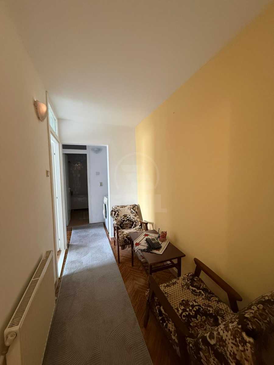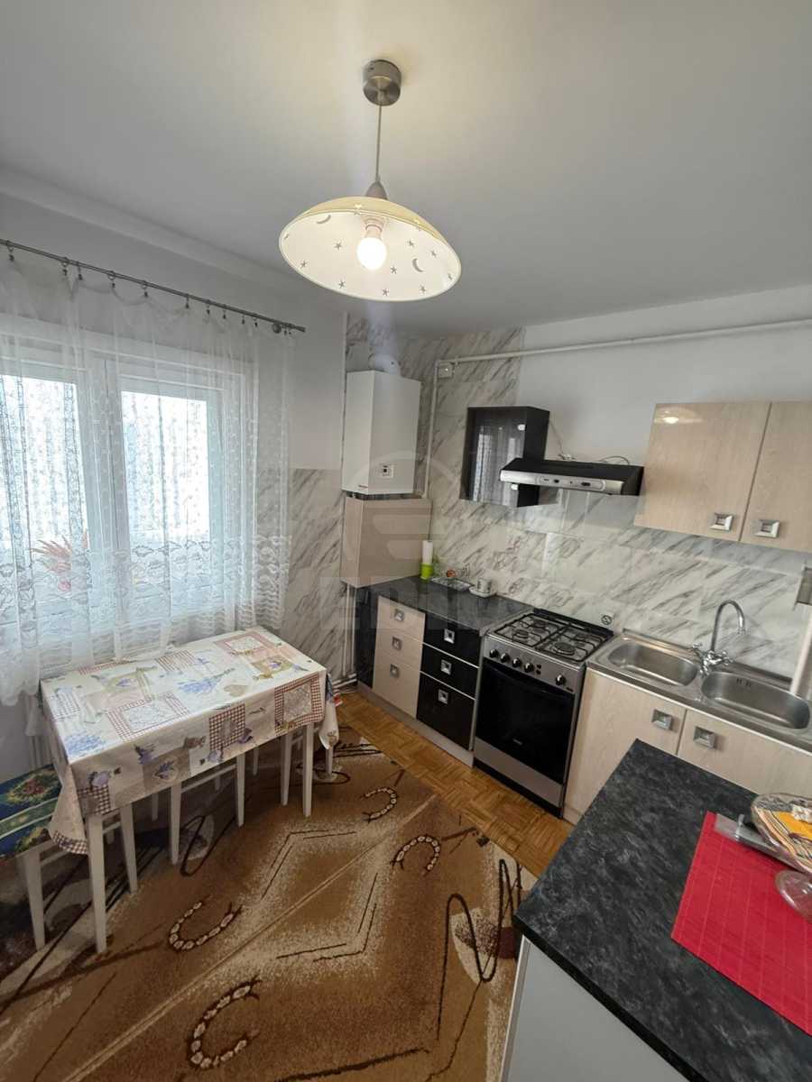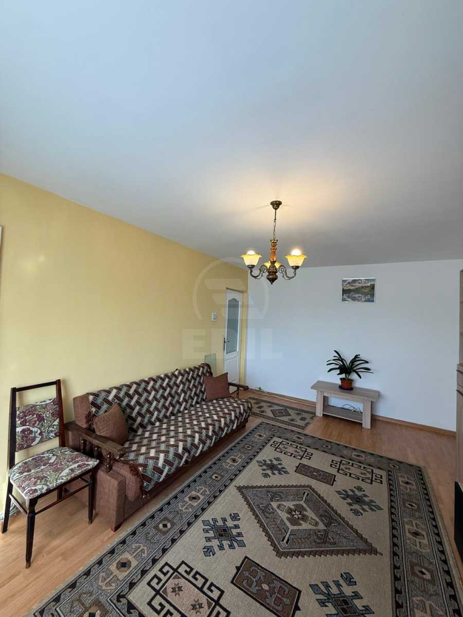 We offer for rent a 2-room apartment located in the Mănăștur neighborhood, in the Supeco/Penny area, in a quiet and accessible location. The apartment is situated on the 1st floor of a 4-story building and has a fully detached layout. The interior space consists of a long hallway with a dressing area for storage, a separate and fully equipped kitchen, two rooms (both furnished with extendable sofas), and an enclosed balcony with access from one of the rooms. An important advantage is the presence of two bathrooms: a main bathroom with a bathtub and a guest toilet. The apartment is equipped with its own central heating system, solid wood flooring, ceramic tiles, and wall tiles. It is furnished in a mix of classic and modern style, with some recently replaced furniture pieces. It comes fully equipped with a refrigerator, washing machine, stove, and intercom. The location is excellent for everyday living: bus stops, Carrefour and Mega Image stores are within a 5-minute walk, and within 10 minutes you can reach Piața Flora, Penny, Supeco, schools, and kindergartens. Access to the city center is quick, approximately 20 minutes by public transport. APCJ356909