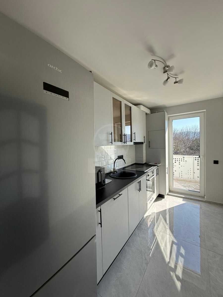 Two-room detached apartment, located in the Mănăștur – Zorilor neighborhood of Cluj-Napoca, an area appreciated for its accessibility and the balance between tranquility and urban dynamism. The property consists of a spacious hallway, a bedroom with a double bed and direct access to the open balcony, a bright living room with a sofa bed and TV, a modern bathroom with shower, and a fully equipped kitchen, intelligently laid out over a generous usable area of 60 sqm. Situated on the 1st floor of a new 4-story building, equipped with an elevator and private underground parking, the apartment offers enhanced comfort and easy access. It is delivered fully furnished and equipped, ready for immediate move-in, including refrigerator, cooktop, oven, washing machine, TV in each room, Digi internet, iron, and all the amenities necessary for a modern lifestyle. Underfloor gas heating and air conditioning ensure an optimal indoor climate in any season, while the balcony provides the perfect space for relaxing moments. The location is a major advantage: just a few minutes from bus stations, in close proximity to Kaufland, Lidl, and Carrefour stores, as well as the entertainment area featuring Cinema Dacia. The property is also near the University of Agricultural Sciences and Veterinary Medicine and within short distance of the green spaces of Iuliu Prodan Park, offering quick access to educational and commercial facilities as well as relaxation areas. A modern, well-positioned, and carefully equipped home that perfectly combines comfort, functionality, and the advantages of a premium location, ready to become “home” from day one. APCJ357091