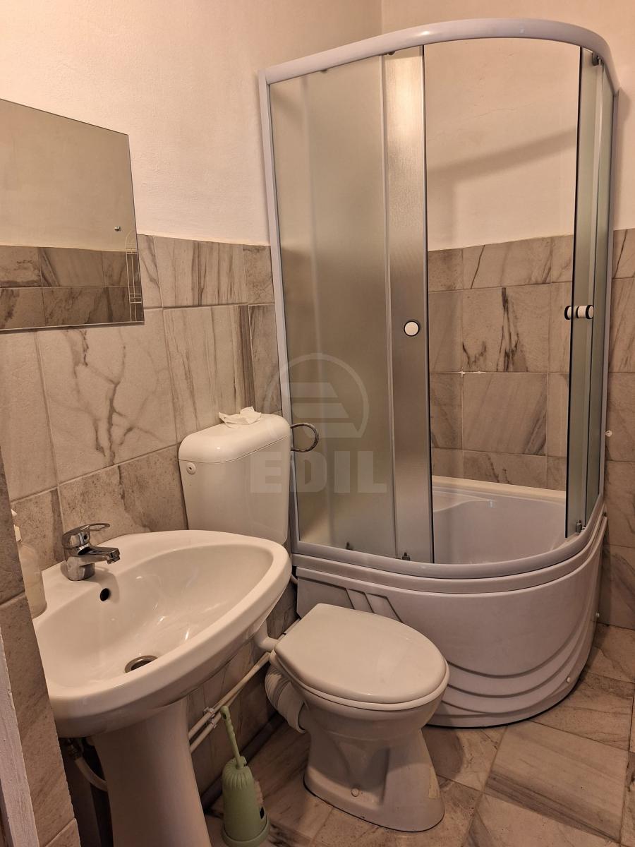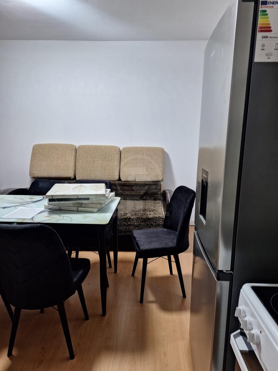 EDIL offers for rent a modern 2-room apartment, with enhanced comfort, located in Cluj-Napoca, in the Mărăști neighborhood, near Hotel Paradis, Armonia Beauty Salon, Panemar, and Cronos Caffe, as well as very close to bus stations. The apartment is detached, has an area of 60 sqm, and is situated on the ground floor of a building with 1 floor. It features a modern bathroom, is finished with modern wall tiles, floor tiles, and laminate flooring, and the property is fully furnished and equipped (television, refrigerator, washing machine, stove) and also includes a parking space. The price covers all expenses (water, electricity, heating, cable TV, and internet), offering complete comfort with no additional worries. The apartment features a compact and functional kitchen-living area, furnished with a glass-top table and four dark-colored chairs, while a sofa positioned behind the dining area creates an open-space layout that seamlessly combines the kitchen with a small living zone. For more information or other offers, you can contact us by phone or visit our office: EDIL, Str. Iuliu Maniu no. 13, apt. 6, Cluj-Napoca (Offer Code: 355329). APCJ355724