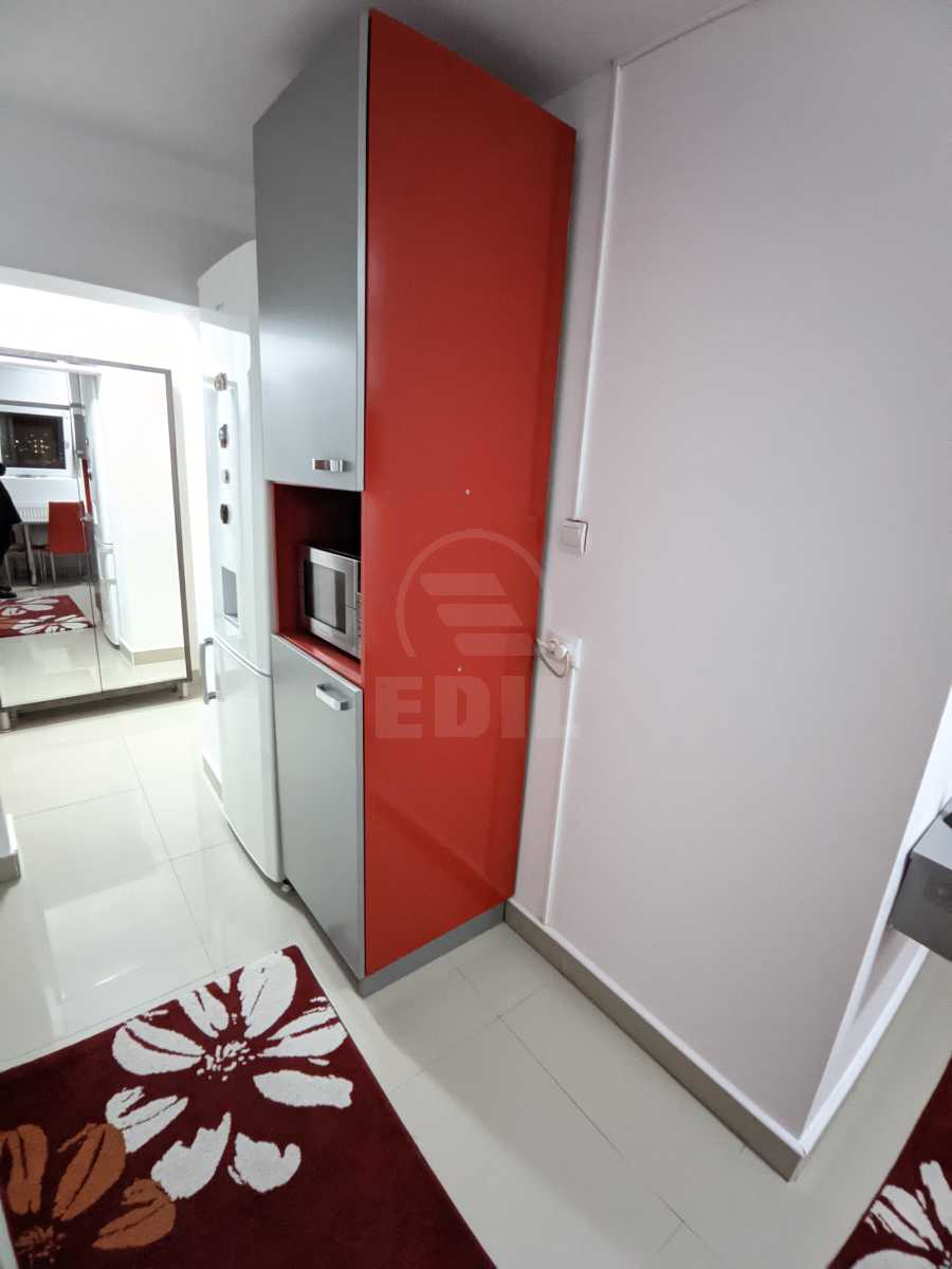 We are pleased to present a two-room apartment located in Cluj-Napoca, in the Iris neighborhood, on Bulevardul Muncii, near the Faculty of Industrial Engineering, Robotics and Production Management. The apartment is situated on the 6th floor of an 8-story building and has a total area of 50 sqm. It offers the comfort of a detached layout with a bright and practical design. The property features its own central heating system, a modern bathroom, and two spacious balconies. It is finished with contemporary tiles and laminate flooring of high quality. The apartment is sold fully furnished and equipped with modern appliances, including a refrigerator, washing machine, stove, and a generous storage space in the pantry. Additional amenities such as an elevator and intercom provide extra comfort and security. If this offer interests you or if you would like to explore other similar properties, please contact us by phone or visit our EDIL agency at 13 Iuliu Maniu Street, Apt. 6, Cluj-Napoca.headquarter EDIL, Str. Iuliu Maniu, Nr. 13, Ap. 6, Cluj-Napoca. APCJ355567