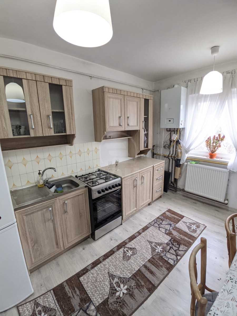 EDIL offers for sale a spacious 3-room apartment located in Cluj-Napoca, in the Zorilor neighborhood, close to the Recovery Hospital, on the 4th floor of a 4-story building. The apartment is classified as comfort 1 and features a detached layout, providing enhanced privacy and functionality. The property is equipped with its own central heating system, two bathrooms, and two balconies, making it ideal for a family or for those who seek a generous and well-organized living space. Modern finishes such as quality tiles and laminate flooring contribute to a pleasant and well-maintained atmosphere. The apartment is furnished in a style that combines classic and modern elements and is fully equipped with all necessary appliances, including a refrigerator, washing machine, and stove. It also benefits from an intercom system, ensuring additional comfort and security. If this property catches your interest or you would like to explore other offers, feel free to contact us by phone or visit us at the EDIL office on Iuliu Maniu Street, no. 13, apt. 6, in Cluj-Napoca.