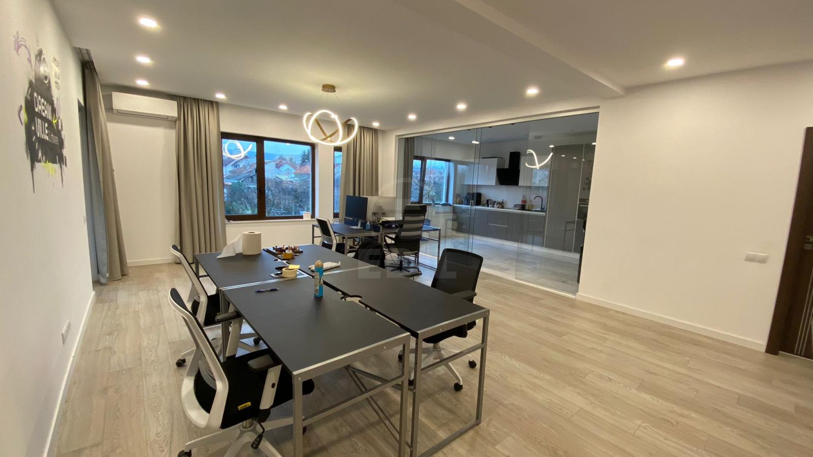 Real Estate presents you an exceptional offer! EDIL provides an office with 3 rooms rent in CLUJ-NAPOCA, GHEORGHENI area, near PIATA HERMES. The office has a surface of 120Sq.M and is placed at floor 1 from 2. The office has 1 bathroom, 2 parking places. It comes with central heating, air conditioning. Lighting lamps, exterior building. The office has kitchen, storeroom, interphone, video interphone, yard, double glazing windows, metallic door. Call now and you will know more about our offer. BICJ347368