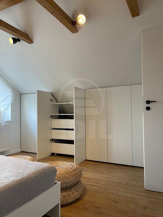 Nous proposons à la location un appartement de 2 pièces situé dans le quartier Bună Ziua à Cluj-Napoca, dans un secteur résidentiel calme composé de maisons, idéal pour 1 à 2 personnes recherchant confort, intimité et accès rapide au centre-ville. Le logement se compose d’un séjour avec cuisine ouverte, d’une chambre séparée, d’une salle de bain et d’un balcon, offrant une surface généreuse de 50 m², intelligemment compartimentée pour assurer fonctionnalité et multiples espaces de rangement. L’appartement est aménagé dans les combles d’un immeuble récent de seulement deux niveaux, bénéficiant d’une excellente isolation, d’une belle luminosité naturelle et d’un accès indépendant, garantissant un supplément d’intimité et de confort. L’intérieur est moderne, entièrement meublé et équipé, avec cuisine aménagée, réfrigérateur, machine à laver, cuisinière, chauffage individuel et climatisation, finitions contemporaines telles que carrelage moderne, parquet stratifié et une atmosphère propre et soigneusement entretenue. Un avantage important est la place de parking incluse ainsi que l’accès à une cour commune avec espace détente, idéale pour se relaxer après une journée chargée. L’arrêt de bus se trouve à environ 50 m, et les magasins Lidl, Mega Image, Panemar et Moldovan sont à seulement 300 m, offrant un accès facile à toutes les commodités quotidiennes. Ce bien représente le choix idéal pour ceux qui recherchent un appartement charmant, lumineux et bien situé, dans un quartier apprécié pour sa sécurité et son accessibilité, prêt à devenir votre chez-vous dès le premier jour. APCJ356947