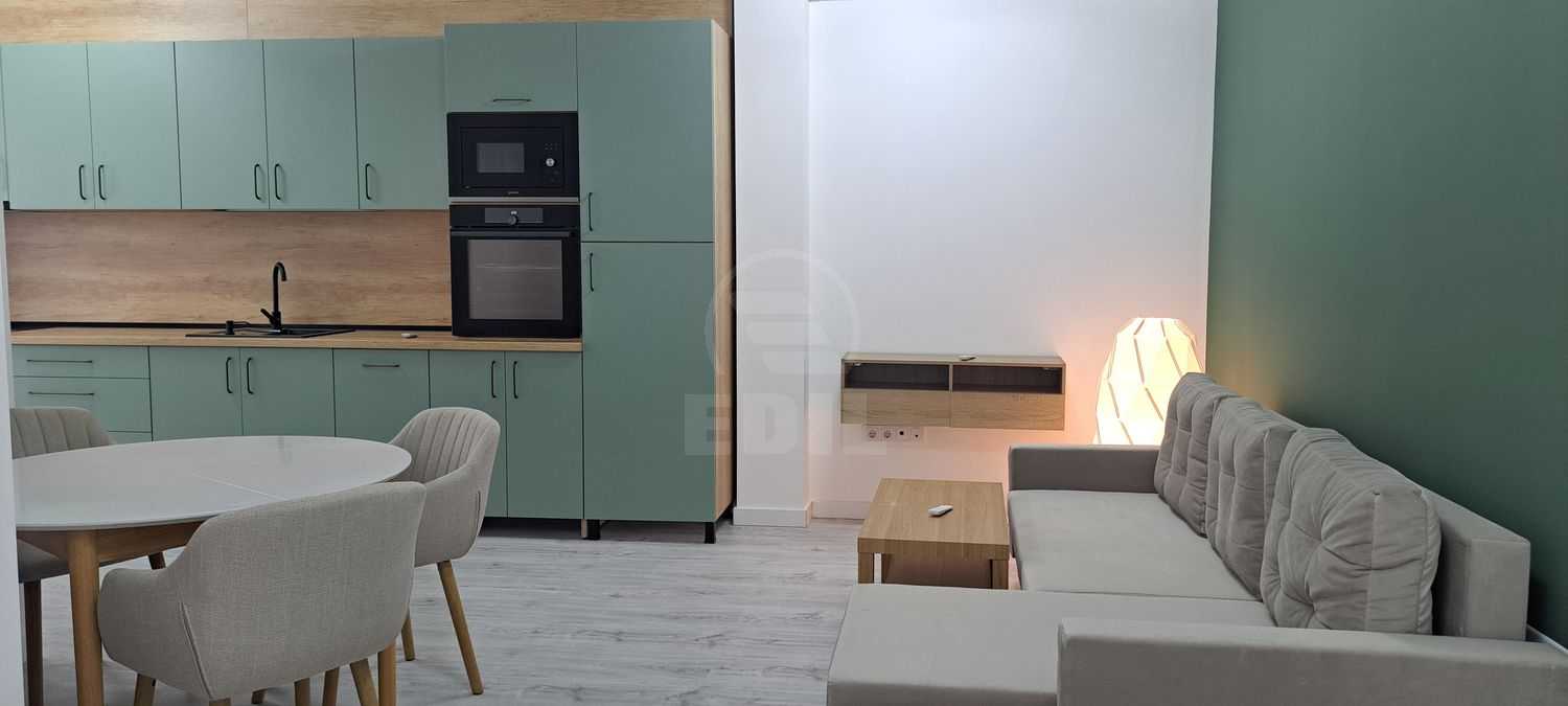Edil Floresti oferă spre prima închiriere, exclusiv pe termen lung, un apartament modern cu 2 camere, situat în ansamblul rezidențial Eroilor Residence, la etajul 1 din 6, într-un imobil nou, cu design contemporan. Locuința are o suprafață utilă de 55,1 mp și beneficiază de un balcon spațios de 12,4 mp, ideal pentru momente de relaxare. În preț este inclus și un loc de parcare subteran. Apartamentul este compartimentat eficient și dispune de living open-space, mobilat cu mobilier de înaltă calitate, bucătărie complet utilată cu electrocasnice de ultimă generație, două dormitoare confortabile, baie modernă și balcon cu acces din living și din dormitoare. Se închiriază complet mobilat și utilat, fiind dotat cu centrală termică proprie, încălzire prin pardoseală, interfon (în curs de instalare) și finisaje moderne de calitate superioară. Imobilul este nou, izolat termic, cu un aspect elegant, amplasat într-o zonă liniștită și bine conectată, oferind confort și siguranță pe termen lung.