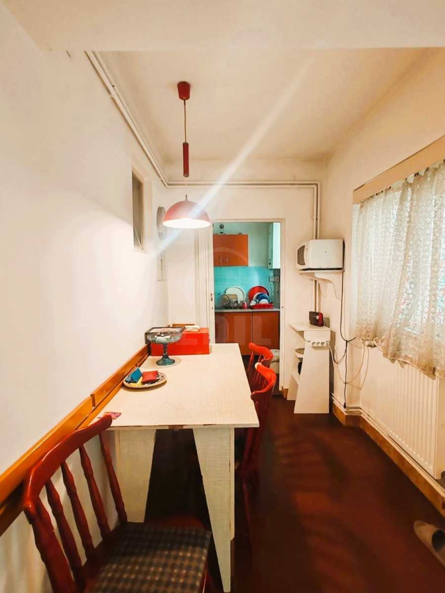 Nous vous proposons à la vente un spacieux appartement de 3 pièces, situé au cœur de Cluj-Napoca, dans le quartier Central, sur la partie basse de la rue Calea Turzii, à seulement 10 minutes de la place Cipariu et 15 minutes du Théâtre National. Avec une surface habitable généreuse de 83 m² et un terrain attenant de 93 m², cet appartement occupe tout le premier étage d’une villa de l’entre-deux-guerres à un seul niveau, nichée dans une cour intérieure avec jardin, à l’abri du bruit et de l’agitation de l’axe principal, offrant un véritable havre de paix et d’intimité. La disposition semi-indépendante comprend un hall d’entrée reliant la cuisine, l’une des chambres et la salle d’eau, un vaste salon doté d’une bibliothèque imposante, l’accès à la salle de bains principale avec baignoire et fenêtre, ainsi qu’à la seconde chambre lumineuse. Les finitions classiques – parquet massif, faïence et carrelage – confèrent à l’ensemble un cachet authentique, mais l’appartement nécessite une rénovation pour répondre aux exigences actuelles de confort. Il est vendu entièrement meublé et équipé, incluant chauffage central individuel, réfrigérateur, lave-linge, cuisinière, four, four à micro-ondes, vaisselle, débarras et interphone. Idéal pour y vivre comme pour investir, ce bien unique allie le charme de l’architecture d’époque aux atouts d’un emplacement ultra-central. APCJ353195