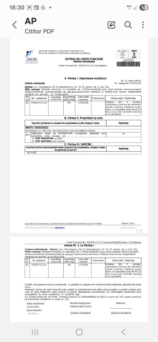 De haute qualité à bas prix! Nous vous offrons vente un appartemant avec 3 chambres en CLUJ-NAPOCA, quartier MANASTUR, près de CASA PIRATILOR. L'appartement est situé au '. grand rez de chaussée . ' étage de ' . 4 . ' étages et a la surface de 60 mètres carrées. L'appartement est confort unique demi-decommandé et il a chauffage central, 1 salle de bain, 1 balcon, carrelage moderne, grès moderne, gravure sur bois. L'appartement style moderne et équipées dispose d'autres installations telles que frigo, lavage, poêle, haut-parleur, limber boîte, interphonie, jardin. Appelez-nous pour en savoir plus sur l'offre. APCJ354831