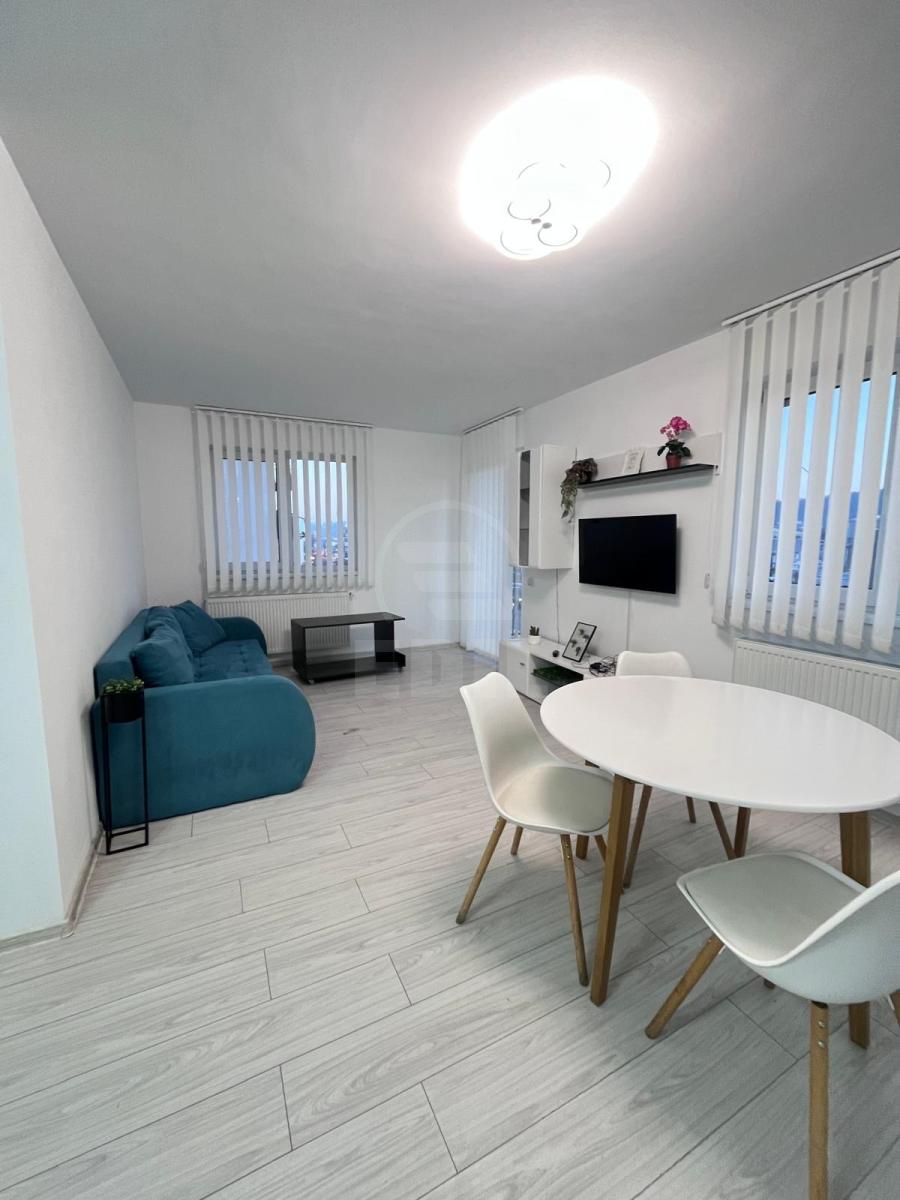 EDIL vă propune spre închiriere un apartament cu 2 camere, situat în Cluj-Napoca, cartierul Dâmbu Rotund, într-o zonă foarte bine conectată, aproape de Lidl, Rompetrol, stații de autobuz și magazine. Apartamentul este amplasat la etajul 1 din 6, are o suprafață de 55 mp, este confort 1, semidecomandat și beneficiază de centrală termică proprie. Locuința este compusă din 2 camere, 1 baie și 1 balcon. Finisajele sunt moderne: gresie și faianță moderne, parchet laminat, iar apartamentul este mobilat și utilat complet, fiind dotat cu televizor, frigider, mașină de spălat, aragaz. Imobilul dispune de lift și interfon, iar un mare avantaj este parcarea subterană (garaj) inclusă. Dacă vă place această ofertă sau doriți informații despre alte opțiuni, vă așteptăm să ne contactați telefonic sau la sediul nostru EDIL, Str. Iuliu Maniu, Nr. 13, Ap. 6, Cluj-Napoca.