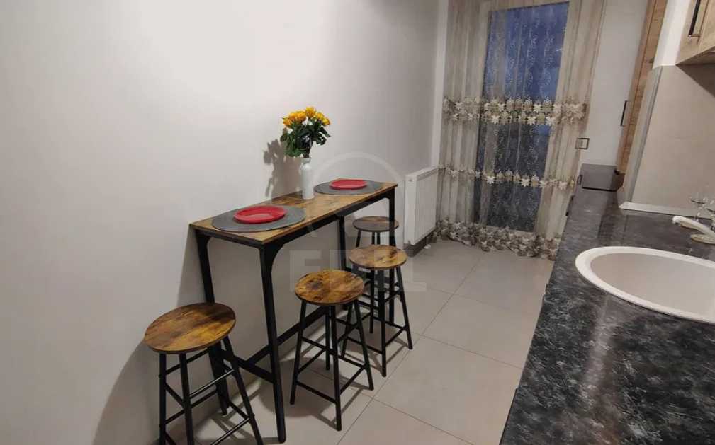 Nu ratati oferta noastra! Imobilul face parte dintr-o constructie noua. Va oferim spre inchiriere apartament cu 2 camere, situat la etajul 1 din 10 etaje, in localitatea CLUJ-NAPOCA, cartierul GHEORGHENI. Suprafata acestuia este de 54 mp. Apartamentul este confort 1 semidecomandat si este dotat cu centrala proprie, 1 baie, 1 balcon, faianta moderna, gresie moderna, parchet laminat. Acesta are garaj de tip parcare subterana. Imobilul mobilat si utilat modern mai are si alte dotari precum televizor, frigider, masina de spalat, aragaz, lift, interfon. Daca va place aceasta oferta sau pentru alte oferte nu ezitati sa ne contactati telefonic sau la sediul nostru EDIL, Str. Iuliu Maniu, Nr. 13, Ap. 6, Cluj-Napoca.