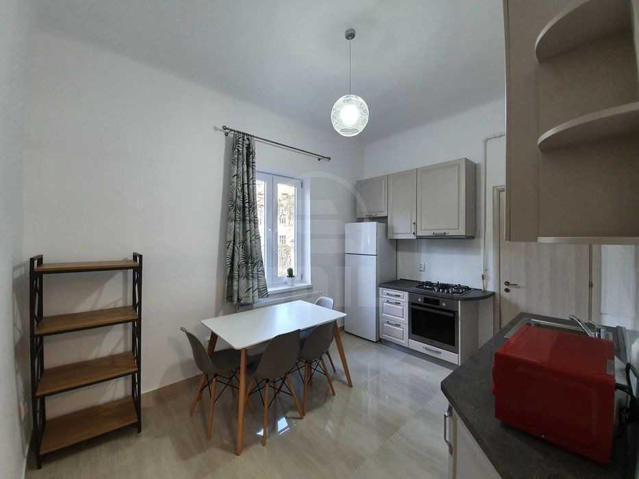 EDIL vă propune spre închiriere un apartament cu o cameră, situat în Cluj-Napoca, în cartierul CENTRAL, în imediata apropiere a Facultatea de Litere. Cu o suprafață utilă generoasă de 45 mp, locuința este amplasată la etajul 1 al unui imobil intim, cu doar 2 niveluri, oferind confort, liniște și acces facil către toate punctele de interes din zonă.Apartamentul este decomandat și impresionează prin spațiul amplu și compartimentarea eficientă: hol primitor, bucătărie separată complet utilată, cameră luminoasă cu pat dublu și birou, baie cu cadă și balcon deschis, ideal pentru momentele de relaxare. Finisajele moderne – faianță și gresie actuale, parchet laminat – sunt completate de dotări esențiale pentru un stil de viață confortabil: centrală termică proprie, aer condiționat, frigider, mașină de spălat, aragaz, cuptor, cuptor cu microunde și interfon.Poziționarea reprezintă unul dintre marile avantaje ale proprietății: la doar 5 minute de stațiile de autobuz, de Piața Mihai Viteazu, de Facultatea de Litere, precum și de licee, restaurante și unități medicale. Este alegerea ideală pentru studenți, cadre universitare sau pentru oricine își dorește să locuiască în inima orașului, cu acces rapid la tot ce contează.Pentru mai multe detalii sau pentru programarea unei vizionări, vă așteptăm la sediul EDIL, pe Str. Iuliu Maniu, Nr. 13, Ap. 6, sau ne puteți contacta telefonic.