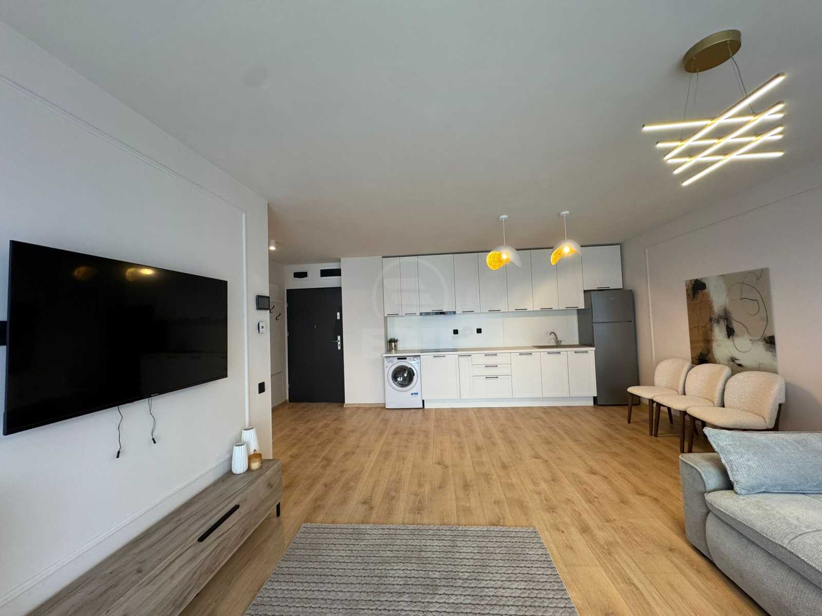 We present a rental apartment in Cluj-Napoca, in the Mărăști neighborhood, very close to LIDL Mărăști, part of a new building. With two rooms and a surface area of 52 sqm, the apartment is located on the 3rd floor of 6 and offers the comfort of a semi-detached layout. It is fully furnished and equipped with modern amenities, including a private heating system, air conditioning, a bathroom with modern finishes, tiles, and laminate flooring. The apartment features a terrace, a parking space, and all the necessary facilities for your comfort, including a TV, refrigerator, washing machine, stove, and intercom. For more information or to explore other offers, you can contact us by phone or visit our EDIL office at Str. Iuliu Maniu, No. 13, Ap. 6, Cluj-Napoca.