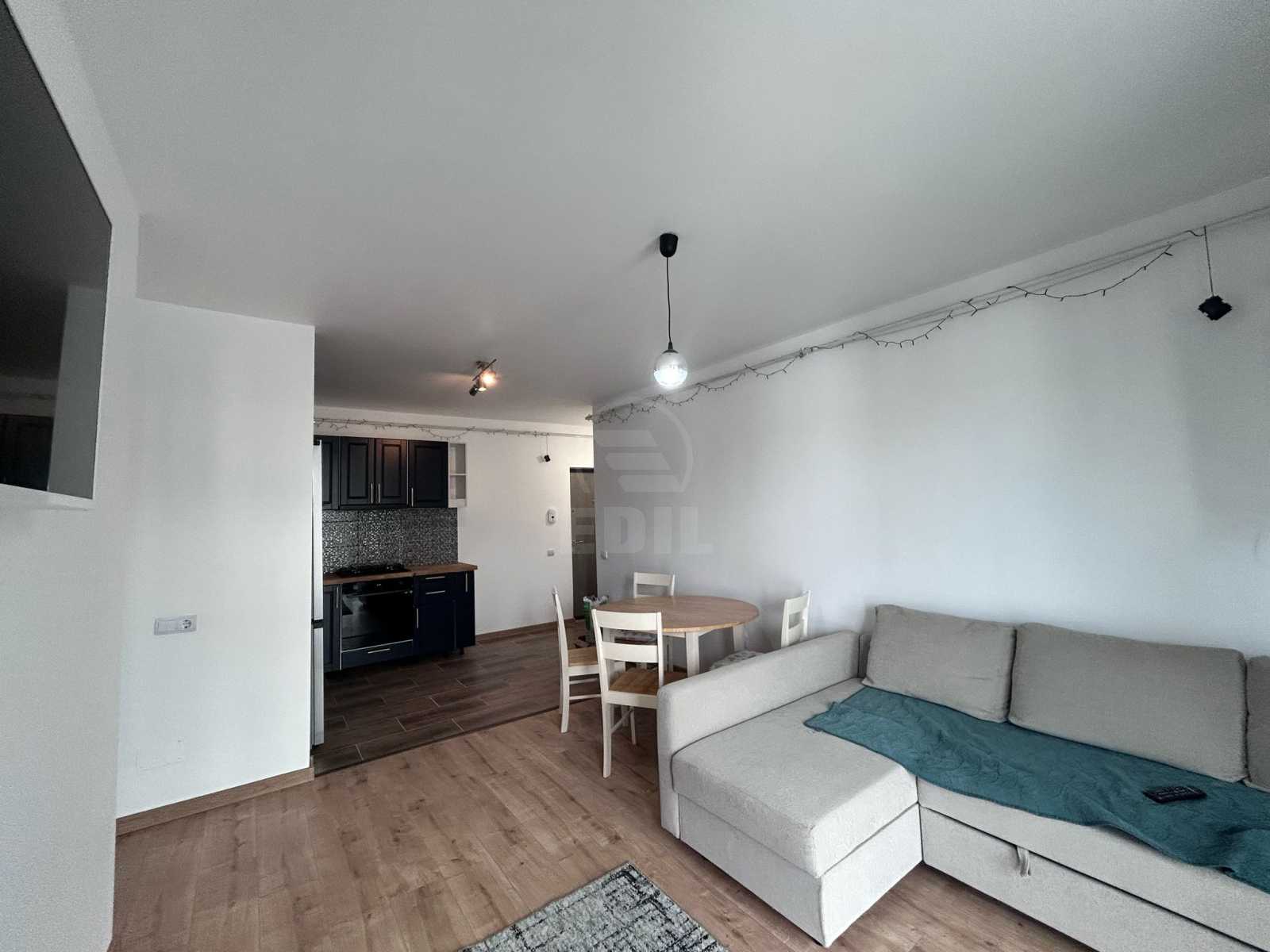 Sunati acum pentru a afla mai multe detalii despre aceasta oferta exceptionala! EDIL Floresti va ofera spre inchiriere un apartament cu 2 camere, situat la etajul 1 din 2 , in FLORESTI, ZONA SESU DE SUS, in apropiere de SUPERMARKET PROFI, MIJLOACE DE TRANSPORT IN COMUN, PIATA FLORESTI. Suprafata acestuia este de 54 mp utili. Apartamentul este confort 1 semidecomandat si este compartimentat astfel:-hol intrare, living cu bucatarie si iesire pe bancon, dormitor cu baie proprie, baie oaspeti, este dotat cu centrala proprie, incalzire in pardoseala, faianta moderna, gresie moderna, parchet laminat. Acesta are loc de parcare. Imobilul mobilat si utilat modern mai are si alte dotari precum televizor, frigider, masina de spalat, aragaz, interfon. Apartamentul este orientat N-E. Daca va place aceasta oferta sau pentru alte oferte nu ezitati sa ne contactati telefonic sau la sediul nostru EDIL Floresti, Str. Eroilor, Nr. 25, Ap. 15 (et. 1), Floresti. APCJ246293