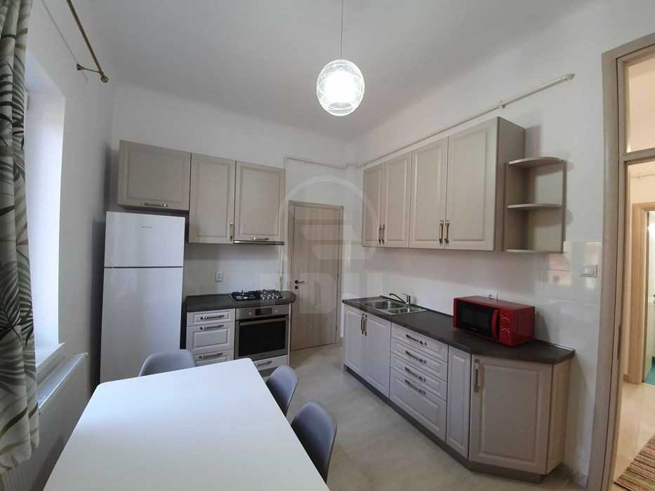 EDIL offers for rent a 3-room apartment located in Cluj-Napoca, in the Gheorgheni district, on Bulevardul Titulescu, one of the most appreciated and well-connected areas of the city. The apartment has a detached layout and consists of two smaller rooms, a spacious master bedroom, a fully equipped kitchen, one bathroom, and a balcony, with a usable area of 65 sqm. The property is situated on the 1st floor of a 4-story building. The home is modernly arranged, featuring contemporary finishes such as modern wall and floor tiles, laminate flooring, and benefits from its own central heating system. The apartment is rented fully furnished and equipped, including a refrigerator, washing machine, stove, oven, storage room, and intercom, allowing future tenants to move in immediately without additional investments. The location is a real advantage: just 2 minutes from bus stations and stores such as Profi and Mega Image, and approximately 15 minutes on foot from the city center, offering quick access to major points of interest, universities, and business areas. It is an excellent choice for those seeking comfort, accessibility, and a pleasant living environment in a well-established area of Cluj.