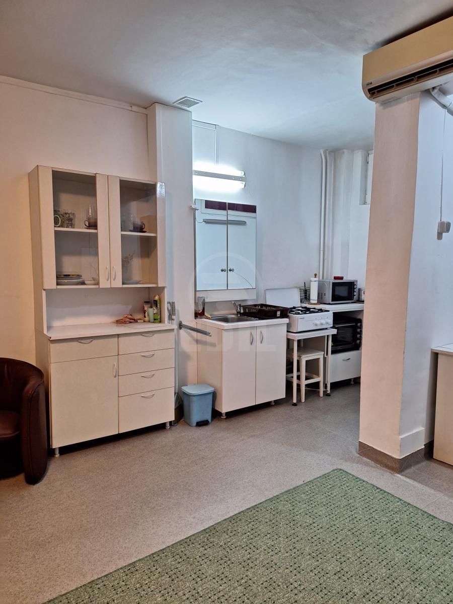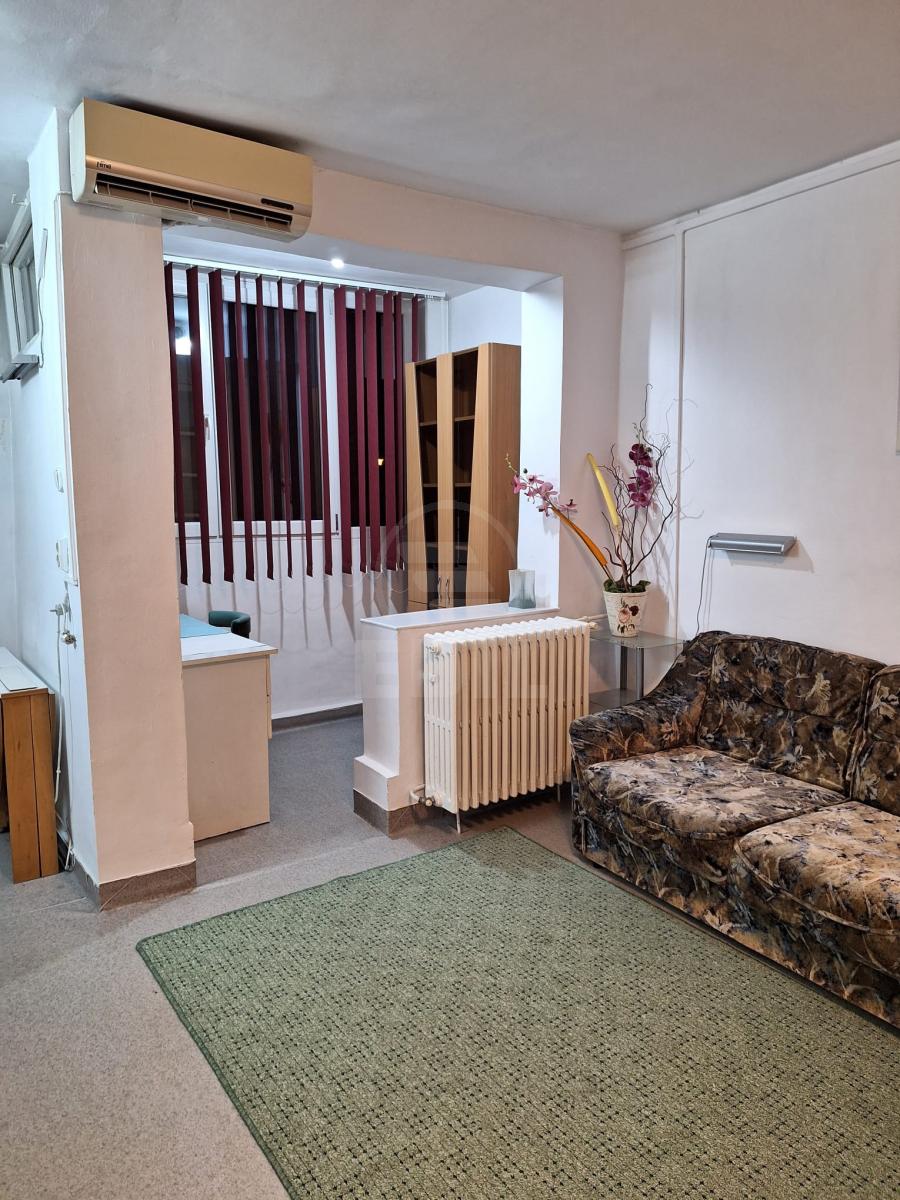 EDIL offers for rent a one-room apartment located on the ground floor of a four-story building in the Gheorgheni neighborhood of Cluj-Napoca, close to FSPAC 2, Mega Image, Remedium Farm, and Nicolae Titulescu Boulevard. The apartment has a surface of 33 sqm, is fully detached, and offers first-class comfort. It is furnished and equipped in a classic style, featuring a refrigerator, washing machine, stove, oven, TV installation, air conditioning, and intercom. The finishes include classic tiles and laminate flooring. The property also has two bathrooms, a practical storage room, and a parking space included. Located in a quiet and accessible area, in a building mainly occupied by young people, this apartment is an ideal choice for those looking for a comfortable home close to key amenities and public transport. APCJ355516
