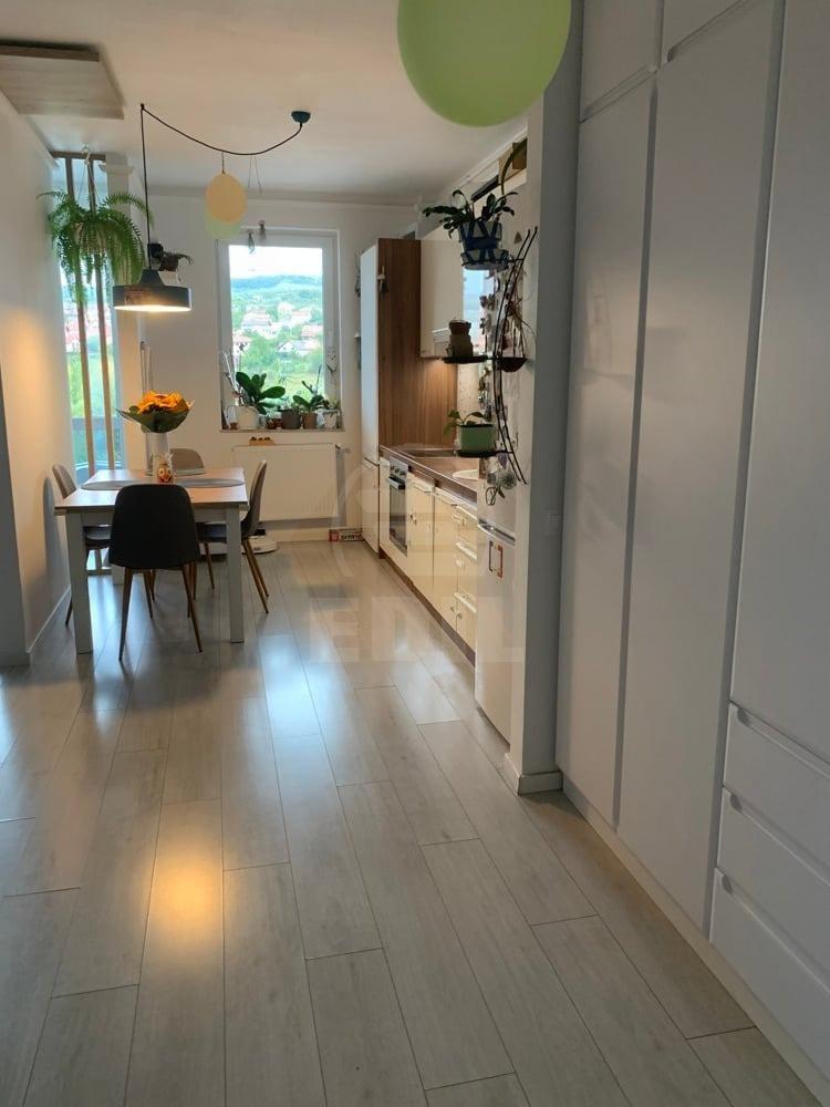 EDIL offers for sale a 2-room apartment located in a new building in Cluj-Napoca, in the Borhanci district, on Borhanciului Street, an area appreciated for its tranquility and accessibility. The apartment is situated on the 4th floor out of 4 and offers a well-organized and bright living space. The property has a semi-detached layout, is classified as comfort level 1, and features its own central heating system, one bathroom, and a balcony, ideal for a comfortable lifestyle. The finishes are modern, including contemporary tiles and ceramic wall finishes, and the apartment is sold fully furnished and modernly equipped. The amenities include a TV, refrigerator, washing machine, stove, and intercom system, making the property ready for immediate move-in. If this offer interests you or if you would like additional information or to explore other available properties, please do not hesitate to contact us by phone or visit us at the EDIL office, located at 13 Iuliu Maniu Street, Apt. 6, Cluj-Napoca.