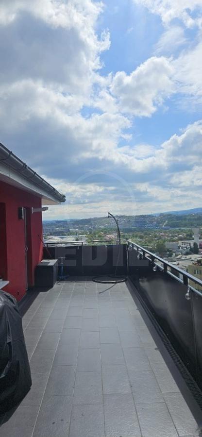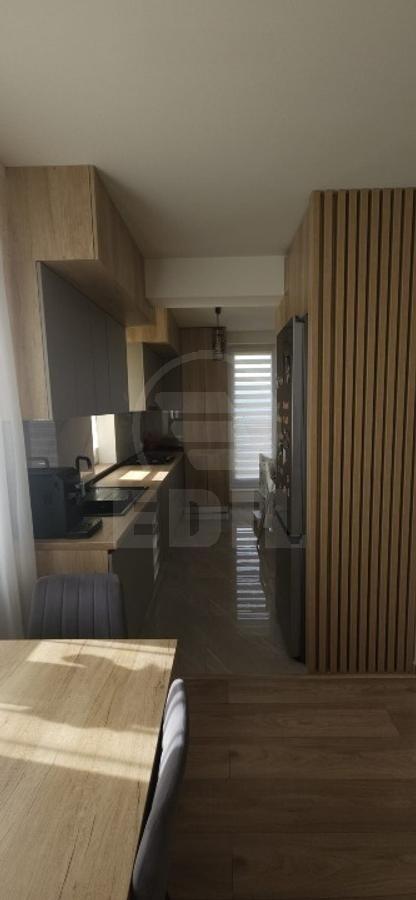 EDIL Agency offers for sale a 3-room apartment located on the 4th floor of a 4-story building in Baciu, close to Old Gym, Mega Image, Pharma Box, an underground parking area, and a terrace, as well as the park on Stelelor Street. The apartment, comfort class 1 semi-detached, is divided into a living room, kitchen, two bedrooms, a bathroom, a dressing room, and a hallway, and features a generous 28 sqm terrace with panoramic views and south-east orientation, ensuring natural light throughout the day. It is modernly finished with ceramic tiles and laminate flooring, fully furnished and equipped (TV, refrigerator, washing machine, stove, intercom), and includes a parking space. In the immediate vicinity you will find a kindergarten, parks, public transport stations, and Lidl. For more details or other offers, you can contact us by phone or visit us at the EDIL office, Str. Iuliu Maniu no. 13, ap. 6, Cluj-Napoca.
