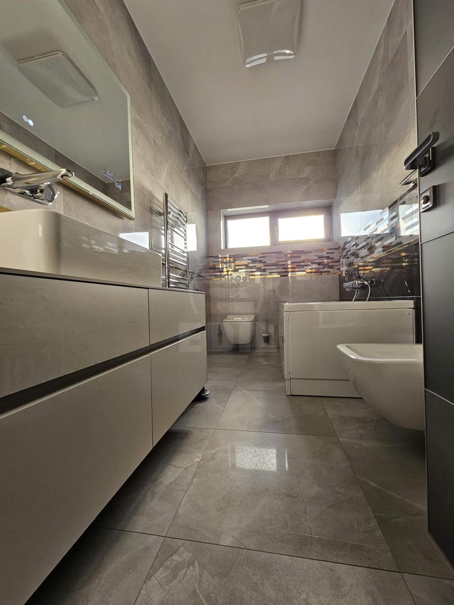 EDIL Imobiliare presents for rent a detached house with 3 rooms, a kitchen, and 2 bathrooms, part of a new construction, located in the Iris neighborhood of Cluj-Napoca, near Auchan Iris. The property spans 135 sqm of usable space and benefits from a generous 300 sqm plot in a quiet area with green spaces. The house is equipped with its own central heating, double-glazed windows, air conditioning, and a metal door, providing all the necessary comfort, while driveway access, refrigerator, stove, washing machine, and TV complete the amenities. For more information or to explore other offers, we invite you to contact us by phone or visit our EDIL office at Str. Iuliu Maniu, No. 13, Ap. 6, Cluj-Napoca. CACJ356074