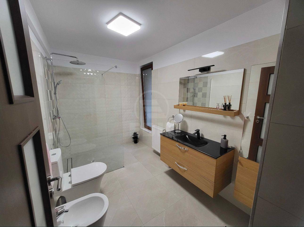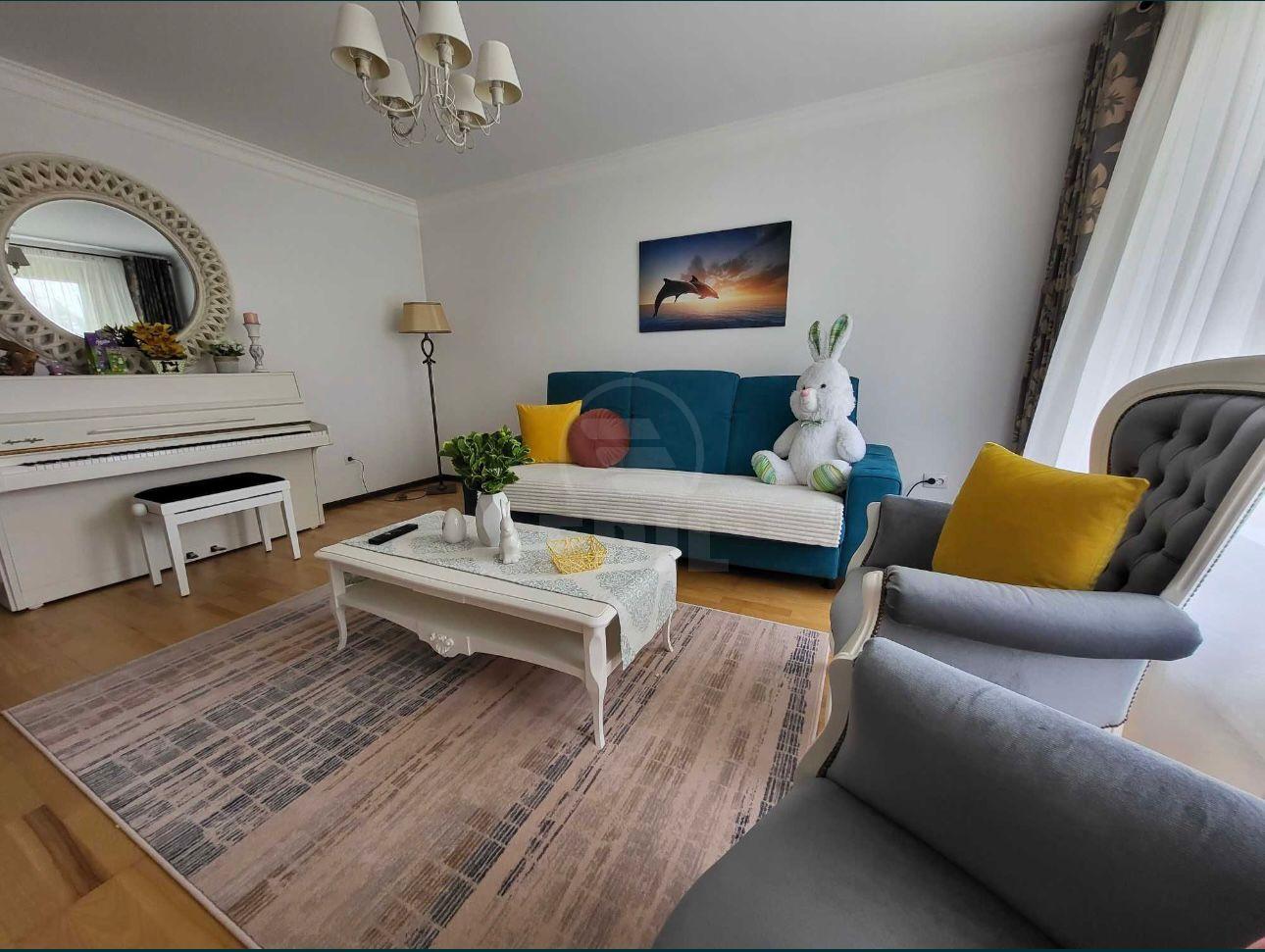 Numai acum puteti beneficia de noua oferta exceptionala! Va oferim spre vanzare casa duplex cu 5 camere , bucatarie, 3 bai in localitatea FLORESTI, zona SOMESULUI. Casa tip duplex monitorizata cu camere video remote, situata intr-o zona linistita, la doar 5 minute de Vivo, acces facil spre oras pe singura strada reabilitata conform standardelor europene cu 4 benzi de circulatie, de asemenea in imprejurimi se regasesc magazine, farmacie, baza sportiva si statiile mijloacelor de trasport in comun. Face parte dintr-un ansamblu rezidential cu acces securizat, exclusiv de case, cu parc propriu. Constructia este finalizata in anul 2010, suprafata totala fiind de 237 mp, utila 140mp, gradina 60 mp, curte 37 mp si balcon de 10 mp. Este dotata cu centrala termica proprie, tamplarie cu geam termopan, termoizolata cu polistiren de 10 cm, caramida de 25 cm. Acoperisul este realizata din tigla metalica, curtea este pavata si ofera posibilitatea de parcare a doua autoturisme. Casa pe exterior a fost renovata recent, schimbandu-se tabla de pe acoperis, burlanele, citernele si revopsirea fatadei. Pavajul a fost inlocuit in intregime. Afara, casa dispune de sistem de udare automat a gazonului si a celor 30 de tuia, plus un rulou pentru umbrire in spatele casei. Majoritatea mobilei din casa este lemn masiv, sanitarele si materialele folosite la finisaje sunt de cea mai buna calitate. Tote renovarile facute au fost din dorinta de a arata si rezista in timp. De asemenea, bucataria se poate uni cu livingul foarte usor, paretele dintre cele doua este de gips carton, astfel o noua camere devine utilizabila in loc la sala de mese. Compartimentare: -Parter: hol, baie cu geam si dus, sala de luat masa, bucatarie si living -Etaj: dormitor matrimonial cu baie proprie cu geam si cada, dressing si balcon, alte 2 dormitoare plus inca o baie/dressing. -Pod: A fost refacut, punandu-se izolatie de tip spuma poliuretanica 25 cm, apoi podit cu placi osb 25cm. Au fost recent adaugate 2 geamuri velux si pregatit pentru a putea fi locuit. Inaltimea podului este destul de mare, ceea ce ar rezulta in 2 camere destul de mari. Cu o investitie minima se poate prelungi scara si utiliza acest loc, insemnand inca aproximativ 60 mp locuibili. Daca va place aceasta oferta sau pentru alte oferte nu ezitati sa ne contactati telefonic sau la sediul nostru EDIL Floresti, Str. Eroilor, Nr. 25, Ap. 15 (et. 1), Floresti. CACJ245645