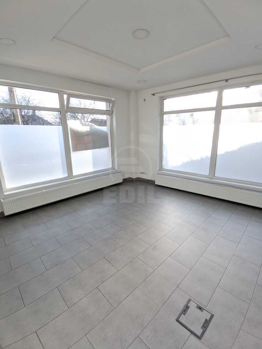 Do not hesitate to contact us for more details! EDIL provides commercial space with 3 rooms rent in CLUJ-NAPOCA, SOMESENI area, near POD IRA. The commercial space has a useful area of 55Sq.M . The space is situated at ground floor. The commercial space has the following characteristics: 1 bathroom, double glazing windows, double glazing door, modern tile, modern sandstone , laminate flooring , showcase, close to public transport. Interior condition: good. The heating system consists of: central heating. General utilities: water, gas, current, sewerage, internet. For more information or other offers of our agency, do not hesitate to contact us at one of the numbers below or at our headquarter EDIL, Str. Iuliu Maniu, Nr. 13, Ap. 6, Cluj-Napoca.