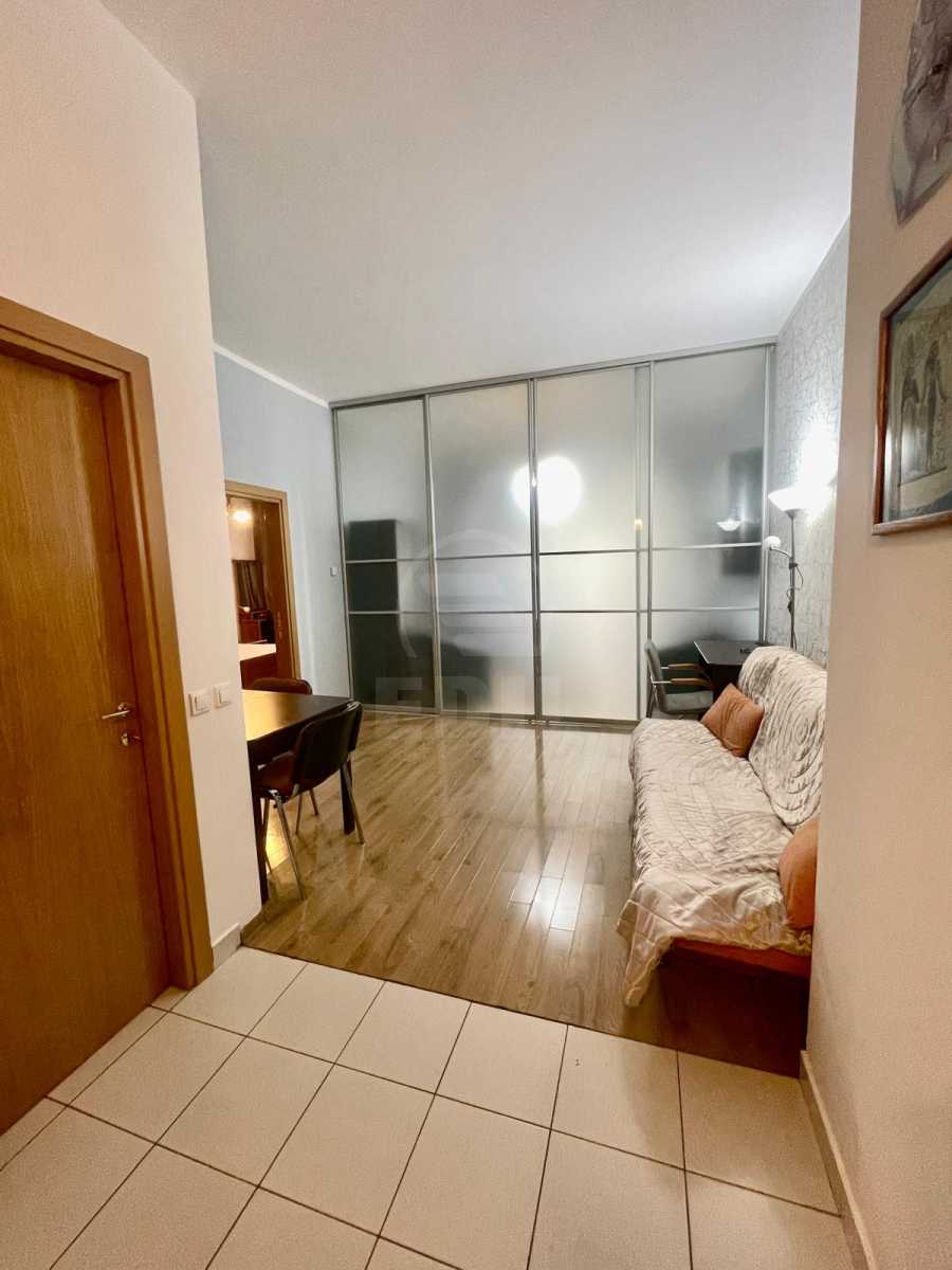 L’agence EDIL vous propose à la location un appartement ultrafinie, moderne et parfaitement entretenu, situé à Cluj-Napoca, dans le quartier Plopilor, en face de la Salle des Sports, au sein d’un ensemble résidentiel récent, calme et élégant. Situé au 1er étage d’un immeuble de 3 niveaux avec ascenseur, l’appartement offre 63 m² d’un espace lumineux et spacieux, avec hauts plafonds qui renforcent la sensation d’ouverture et de confort. Il comprend un séjour avec cuisine ouverte, un espace séparé pouvant servir de bureau ou de coin détente, une chambre confortable, une salle de bains moderne et un balcon donnant sur la cour intérieure. Une partie du séjour a été délimitée par une cloison en verre dépoli, permettant l’aménagement d’une deuxième chambre sans compromettre la luminosité. L’appartement est ultrafinie, entièrement meublé et équipé, au style moderne et propre, doté du chauffage individuel, téléviseur, réfrigérateur, machine à laver, cuisinière à gaz, espace de rangement, interphone et accès à une cour commune bien entretenue. Une place de parking souterraine est disponible pour 50 €/mois. Emplacement idéal : 3 minutes du parc Iuliu Hațieganu, 10 minutes du centre commercial Platinia, et 20 minutes à pied de la faculté de médecine dentaire, parfaitement desservi par les transports en commun. APCJ354996