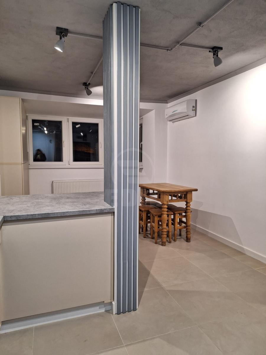 Nous vous proposons à la vente un appartement d’une pièce, situé au rez-de-chaussée d’un immeuble de 8 étages, dans le quartier Mănăștur à Cluj-Napoca, à proximité de Mega Image, de la pharmacie Dr. Max, des arrêts de bus et de la station-service OMV. L’appartement a une superficie de 40 m², offre un confort supérieur et dispose d’une organisation semi-décloisonnée efficace, comprenant une chambre séparée, un séjour avec cuisine ouverte et une salle de bain moderne. Il est équipé d’un chauffage central individuel, d’un climatiseur neuf avec Wi-Fi, de la télévision par câble et d’internet, d’un ventilateur, ainsi que d’un miroir de salle de bain avec fonction anti-buée et d’une ampoule intelligente Wi-Fi avec prise intégrée. Les finitions sont modernes — carrelage et faïence de qualité, et la chambre bénéficie d’un parquet massif en chêne. L’appartement est vendu non meublé et dispose d’une cave spacieuse, située directement sous l’appartement. Pour plus d’informations ou pour planifier une visite, veuillez nous contacter par téléphone ou vous rendre à l’agence EDIL, rue Iuliu Maniu n° 13, ap. 6, Cluj-Napoca. APCJ355459
